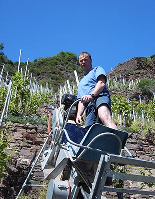Der Der Riesling stellt sehr hohe Ansprüche an die Lage. Er bevorzugt warme, trockene nach Süden abfallende Steilhänge auf durchlässigem Tonschiefer- und Grauwackeboden. Diese Bedingungen findet er bei uns im steilsten Weinberg Europas dem Bremmer Calmont (Calidus mons = heißer Berg). Die Schieferböden speichern tagsüber die Sonnenwärme und geben sie in der Nacht an die Reben ab. Dadurch erhält der Riesling seine lebendige Frische und seinen einzigartigen Geschmack, der oft mit dem Duft von Pfirsicharoma umschrieben wird. Jedoch ist er nicht aufs Essen angewiesen. Er mag auch gerne mal ganz alleine den Abend in einer fröhlichen Runde verbringen.